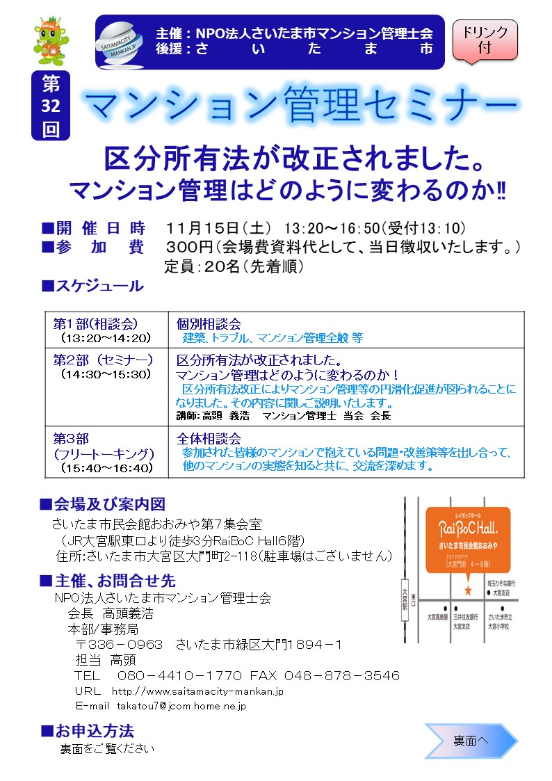 主 催;NPO法人さいたま市マンション管理士会 後援:さいたま市