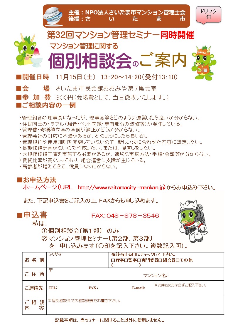 申し込みは上記NPO法人さいたま市マンション管理士会HPで。